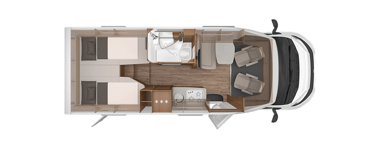 Das klassische Wohnmobil von Carado. Und durch die Schlafnische über der Fahrerkabine ein echtes Raumwunder. Mit viel Platz für Familie, Freunde und Urlaubsfreuden. Der kompakte Klassiker. Stockbett-Abenteuer für die Kinder und ein großzügiges Bad -Urlaubsfreude pur.